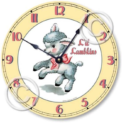 - Classic American retro style children's clock features a sweet, curley little lamb.